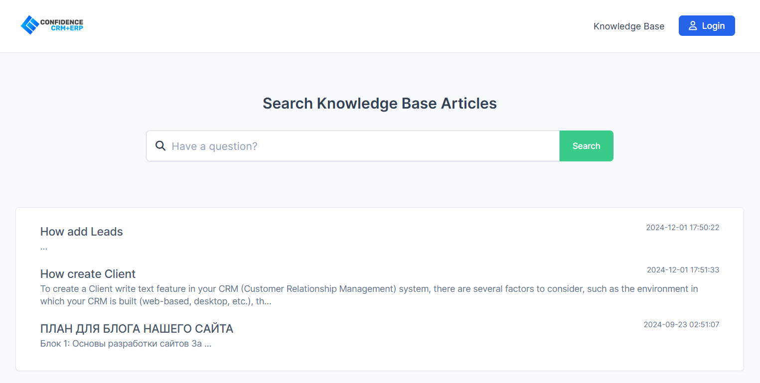 The knowledge base for customers and staff in CRM allows you to create a centralised repository of information, ensure quick access to important data, and improve the efficiency of your team using Homex CRM.