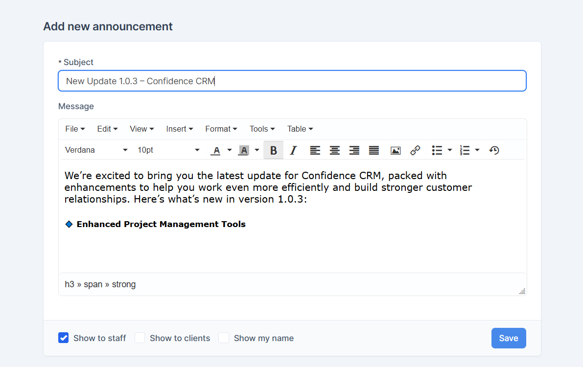 The company news feature in Homex CRM allows you to distribute important information to employees and customers. Stay in touch, share updates, and increase engagement
