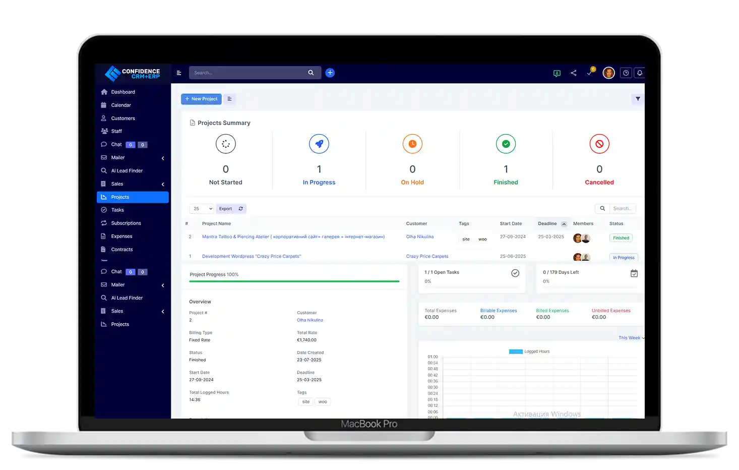Jebkura uzņēmuma panākumi ir atkarīgi no komandas efektivitātes un saskaņotības. Kad projektu skaits pieaug un uzdevumi un termiņi savijas, ir viegli zaudēt kontroli. Šajā gadījumā palīgā nāk mūsdienīga CRM sistēma, kas haosu pārvērš skaidri strukturētā procesā. Šajā rakstā mēs aplūkosim, kā tāds rīks kā Confidence CRM+ERP palīdz uzlabot projektu vadību, izmantojot iespējas, ko redzat ekrānuzņēmumā.